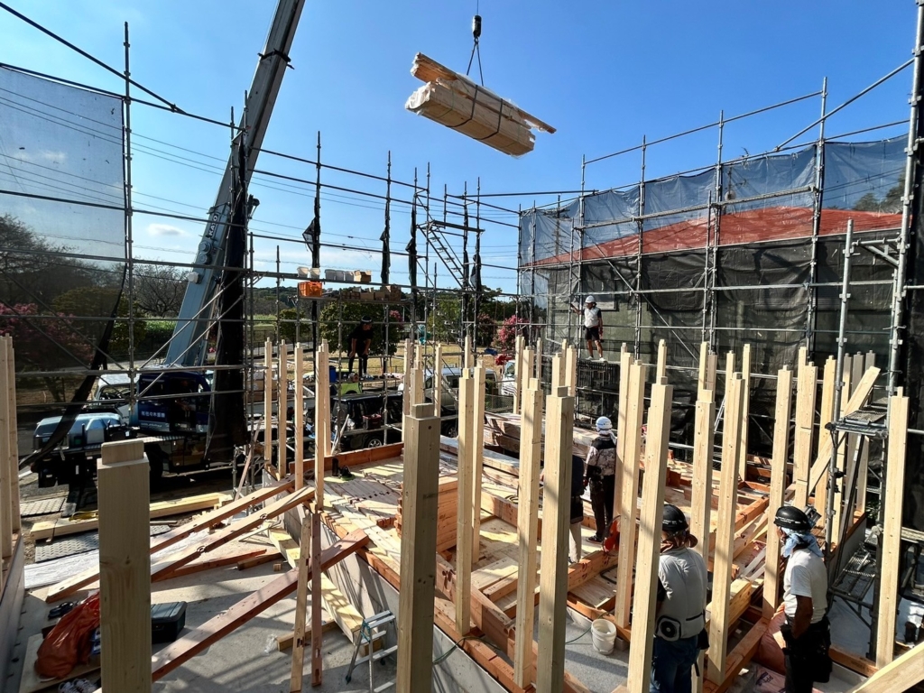 棟梁や応援に来ていただいた大工さんと共に無事一日で作業を終わらせることが出来ました!